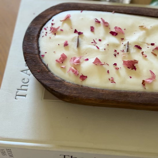 Expertly crafted and non-toxic, this Floral Dough Bowl Candle adds a touch of beauty and scent to any space. Made with natural ingredients and adorned with lovely floral accents, it's the perfect addition to your home decor. Experience the calm and relaxation that comes with this elegant and eco-friendly candle.