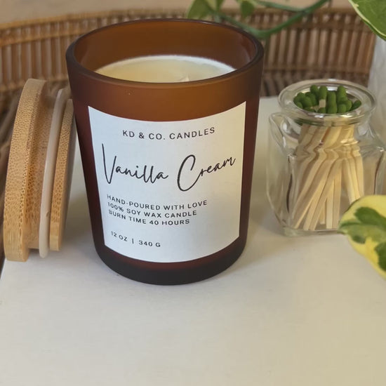 This Vanilla Cream candle creates a warm environment in any home. It is made with 100% soy wax and a cotton wick.